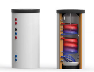 Гелиосистема обычно оснащена баком-аккумулятором тепловой энергии. Как правило это цилиндрическая ёмкость с водой которая служит для запаса тепловой энергии.