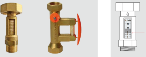 Ротометр — используется для установки и контроля правильного расхода теплоносителя через коллекторы. Ротометры (расходомеры) могут быть различными по конструкции, но у них всегда есть колба со шкалой, по которой осуществляется визуальный контроль расхода.