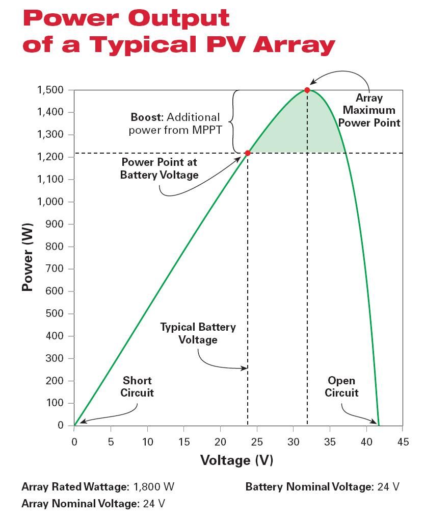 Точка максимальной мощности может вычисляться разными способами. В простейшем случае контроллер последовательно снижает напряжение от точки холостого хода до напряжения на аккумуляторе. Точка максимальной мощности будет находиться где-то в промежутке между этими значениями.