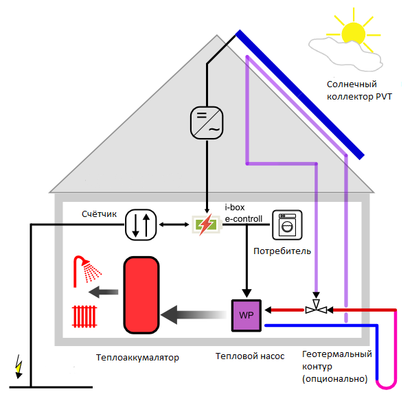 Благодаря постоянному охлаждению теплоносителем от теплового насоса фотоэлектрические панели, встроенные в коллектор имеют лучшую производительность. Генерация электроэнергии увеличивается на 7-10 % в год в сравнении со стандартной солнечной панелью такой же мощности. По данным производителя, этой энергии должно хватать на покрытие большей части электричества необходимого для работы компрессора теплового насоса в течении всего отопительного периода. В летнее время электроэнергию можно использовать на собственные нужды или для передачи в сеть по «зелёному тарифу».