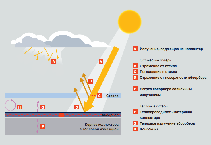 Солнечный коллектор – это сложный теплообменный аппарат, который преобразовывает солнечную энергию в тепловую. Солнечный коллектор не может быть эффективным на 100 % поскольку имеет потери при преобразовании тепловой энергии а так же оптические потери.